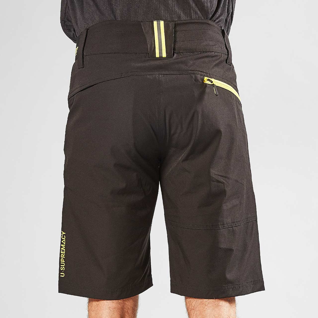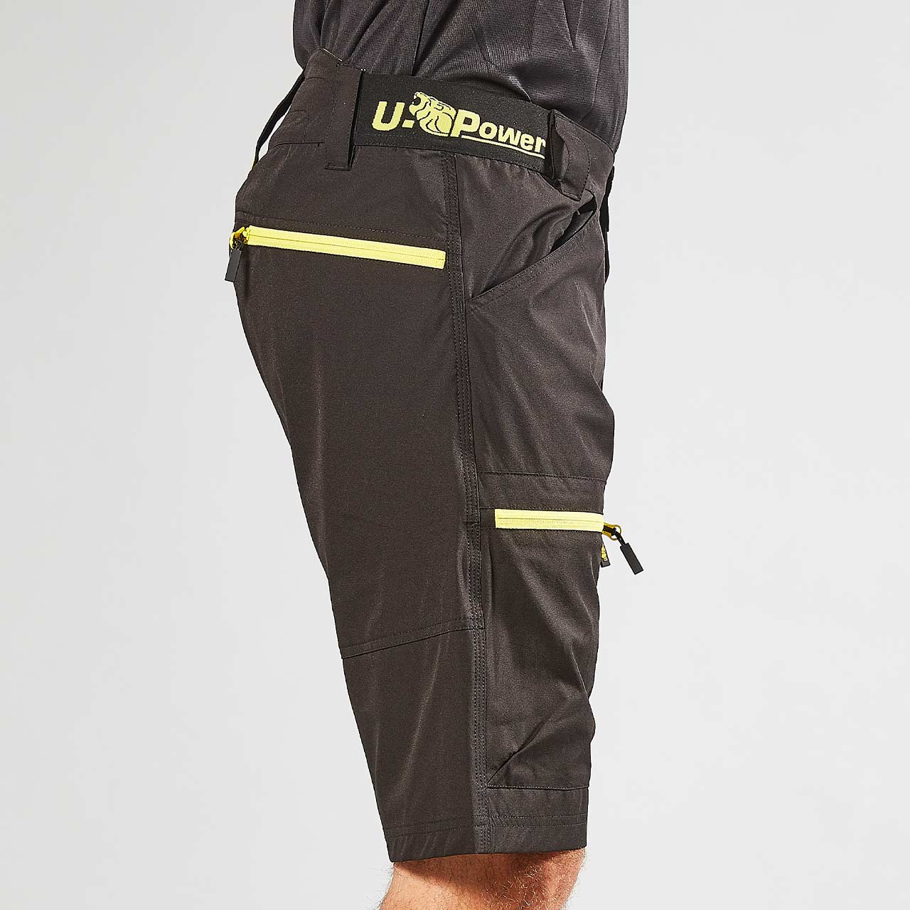 Pantaloni corti multitasche con due tasche anteriori, due tasche multifunzione con zip, due tasche posteriori di cui una con cerniera e una con velcro.