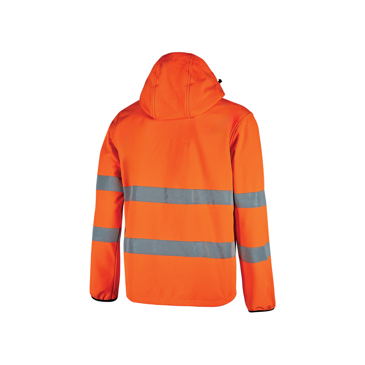 Le bande riflettenti applicate su busto e maniche aumentano la visibilità, rendendola ideale per lavorare in ambienti con scarsa illuminazione. La chiusura centrale con zip e il cappuccio regolabile e staccabile offrono versatilità e praticità, adattandosi alle diverse esigenze lavorative.