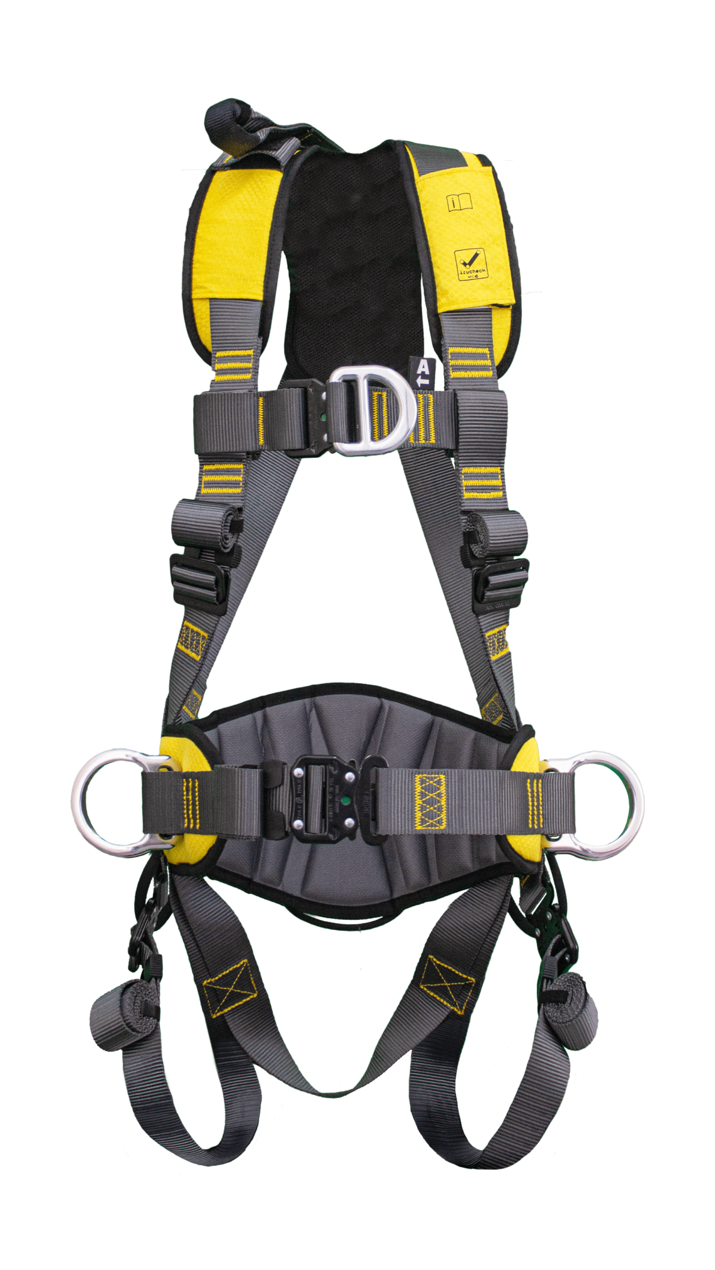Imbracatura anticaduta con cintura di posizionamento, professionale e ultraresistente all’usura. Dotata di anello anticaduta dorsale con fascia di estensione e anello anticaduta sternale. Fasce regolabili su spalle, cintura e cosciali.