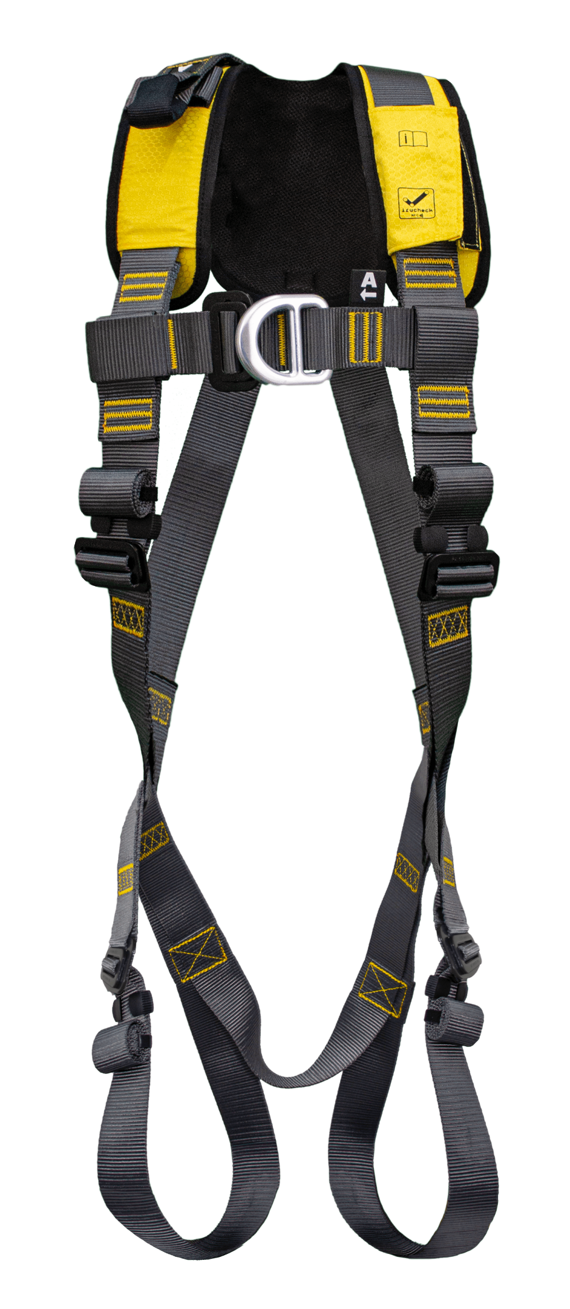 Imbracatura anticaduta professionale e ultraresistente all’usura. Dotata di anello anticaduta dorsale con fascia di estensione e anello anticaduta sternale. Fasce regolabili su spalle e cosciali.