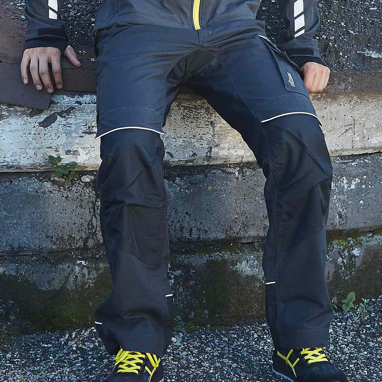 Pantalone in TC stretch canvas dotato di 2 ampie tasche anteriori, tasca laterale portautensili con inserti in polyoxford 300D, tasca laterale multifunzionale con porta badge a scomparsa, 2 Free Pocket posteriori con chiusura di sicurezza a velcro, 2 tasche porta ginocchiera con ingresso dall’alto con interno in tessuto elasticizzato per massimo comfort. Chiusura centrale con zip YKK e bottone gommato antigraffio.
