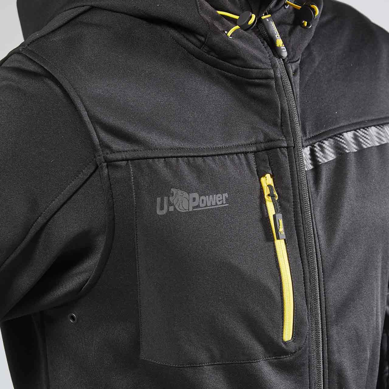 Il design è arricchito da una banda reflex sul petto e sul cappuccio nelle varianti colore Asphalt Grey e Dark Green, mentre nella versione Black Carbon le bande hanno un effetto carbonio. Stampa logo reflective “U-Power” sul petto lato destro.