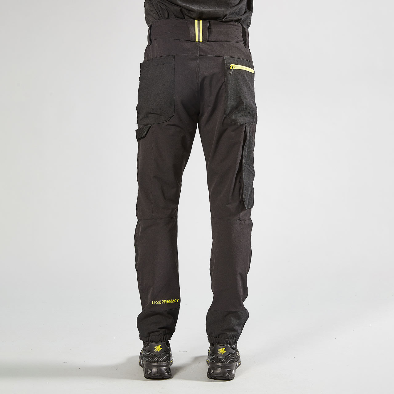 Pantaloni da lavoro estivi in tessuto elasticizzato U-4 way stretch con inserti elasticizzati in vita e sul fondo. Vestibilità jogging molto comoda e confortevole.