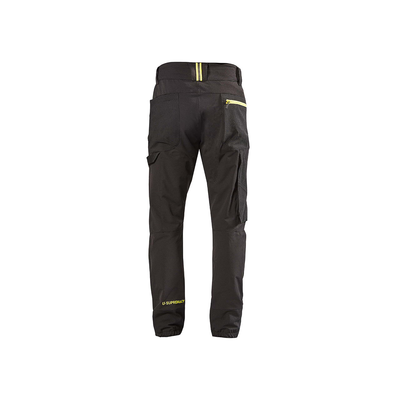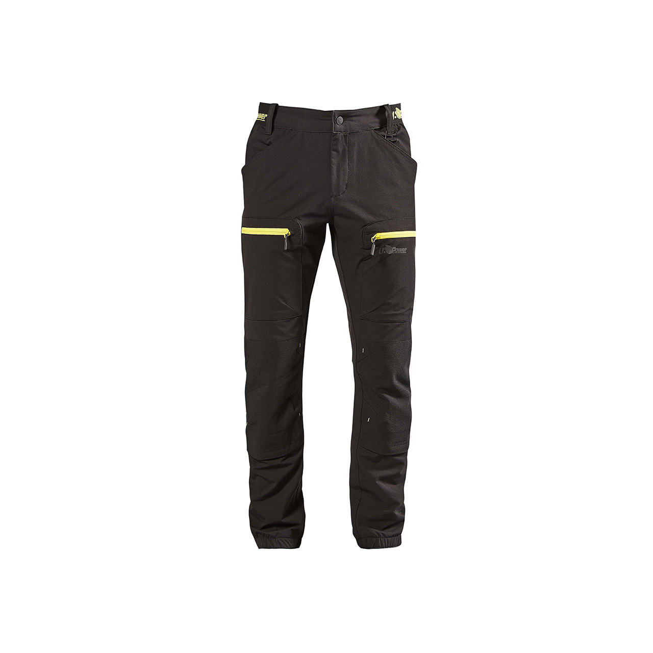 Pantaloni da lavoro stretch in tessuto U-4 con vestibilità jogging e inserti elasticizzati in vita e sul fondo per offrire una migliore vestibilità. Chiusura centrale con zip e bottone gommato antigraffio.