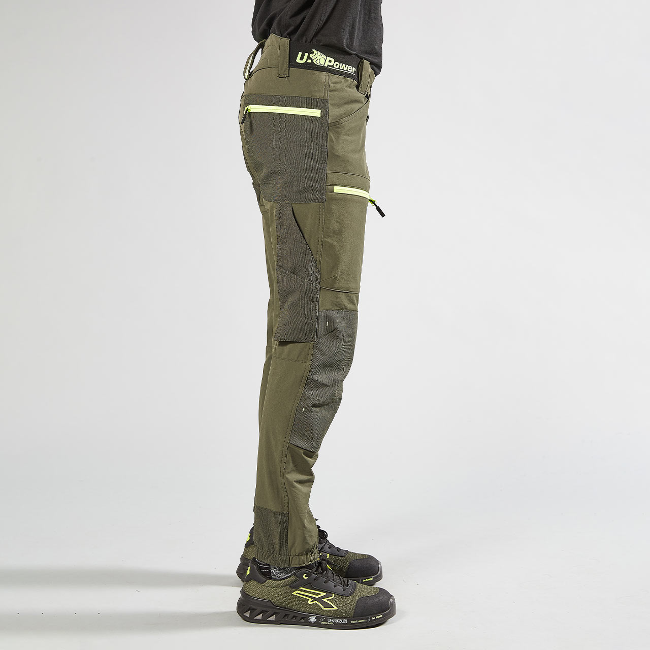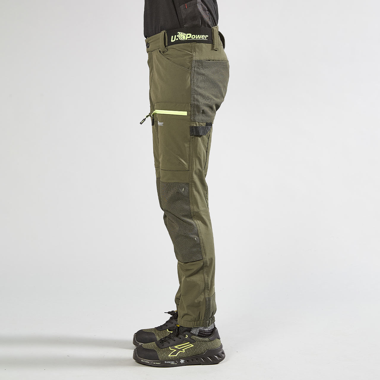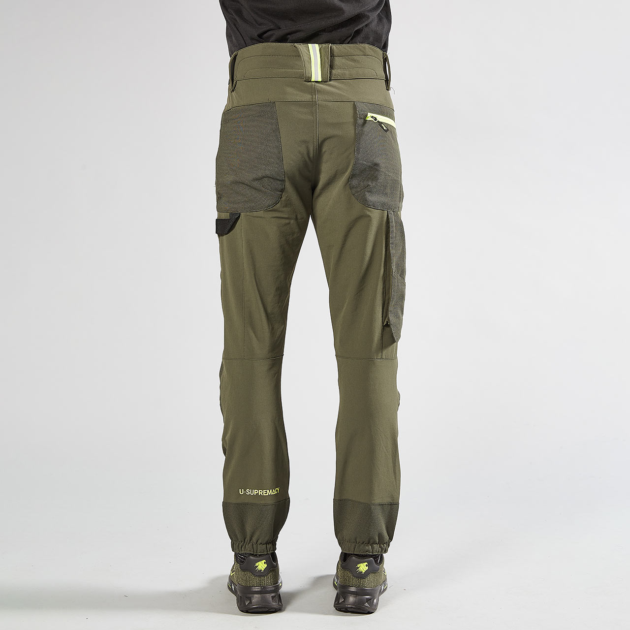 Pantaloni da lavoro stretch in tessuto U-4 con vestibilità jogging e inserti elasticizzati in vita e sul fondo per offrire una migliore vestibilità. Chiusura centrale con zip e bottone gommato antigraffio.