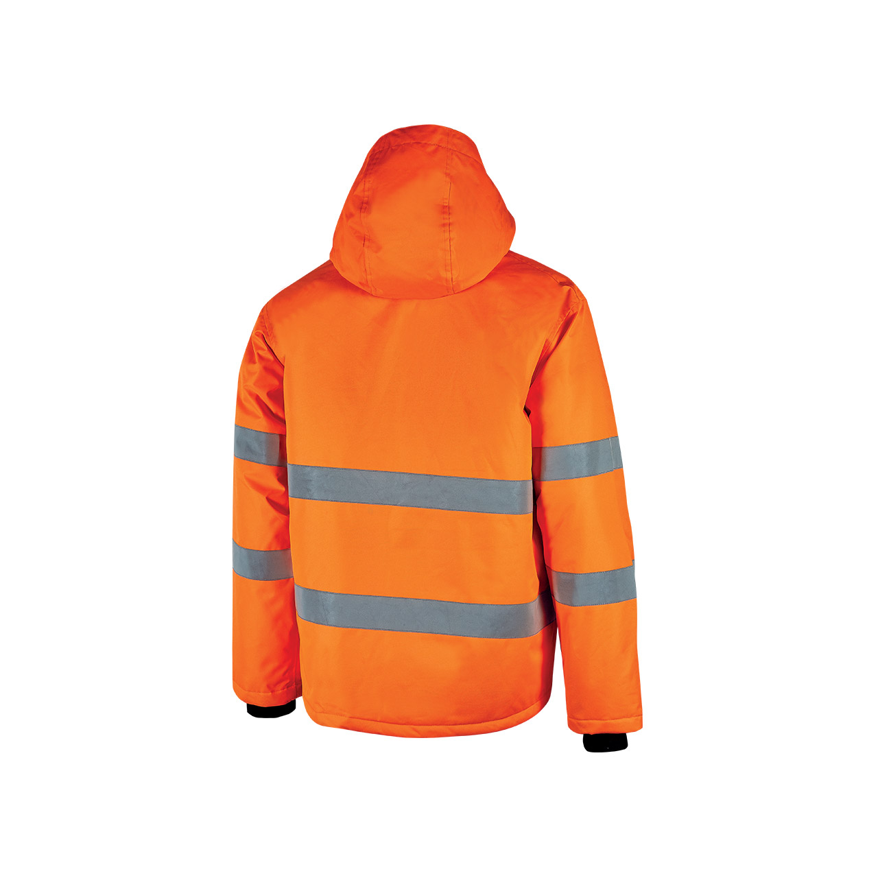 Le bande riflettenti applicate su busto e maniche garantiscono alta visibilità, aumentando la sicurezza sul luogo di lavoro. La chiusura centrale con zip e il cappuccio regolabile e staccabile offrono flessibilità e praticità, mentre i polsini in costine elasticizzate assicurano una vestibilità confortevole e un’ottima protezione contro il vento e il freddo.