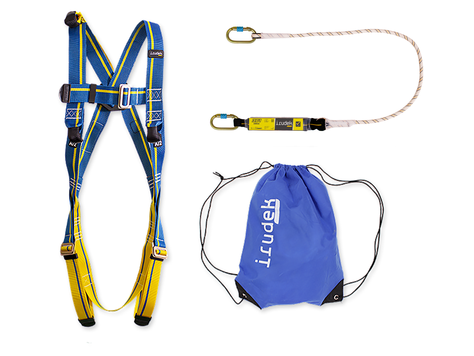 Kit anticaduta certificato per poter dissipare la forza d’impatto di una caduta e progettato per essere utilizzato in maniera facile, rapida e sicura.