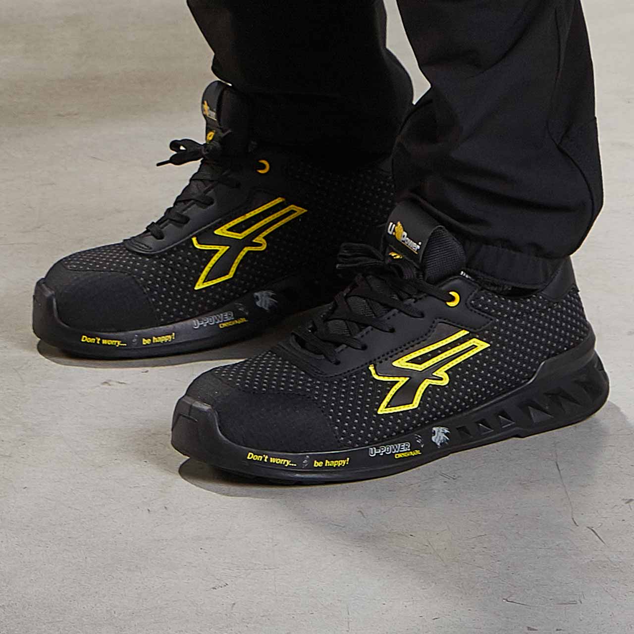 Scarpe traspiranti con suola antiscivolo, antistatica, antiolio e anti-abrasione con innovativo sottopiede tessile antiforo ultraleggero, ideali per: artigiani, elettricisti, falegnami, magazzinieri, settore logistica e trasporti.