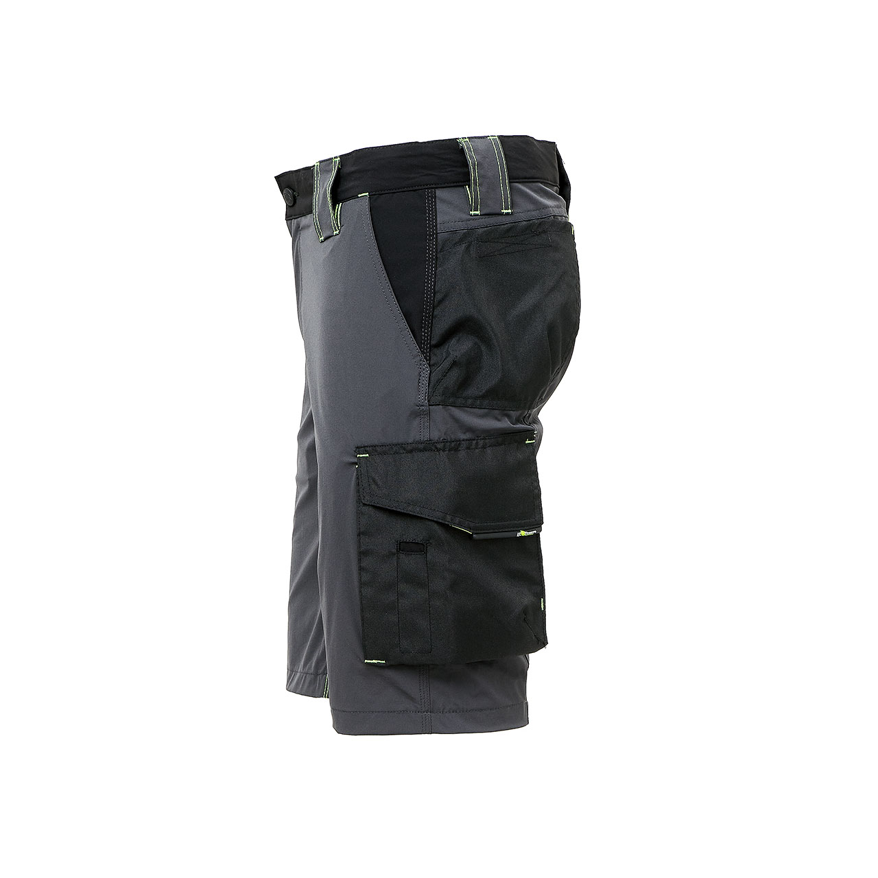 Bermuda in tessuto U-4 (U-Power 4 way stretch) molto comodo, resistente, morbido sulla pelle, idrorepellente, traspirante e asciuga rapidamente. Dotato di due ampie tasche anteriori, elastico in vita con un sistema innovativo di regolazione a scomparsa. Chiusura centrale con zip YKK e bottone gommato antigraffio. Carrè posteriore accentuato per una maggior protezione della parte lombare e nastro reflex su passante tubolare posteriore. Tasca laterale porta utensili, multifunzionale con porta badge a scomparsa, due tasche posteriori di cui una con pattina e una con chiusura di sicurezza a velcro. Due tasche, chiuse con zip in corrispondenza del tascone laterale e della tasca frontale destra. Triple cuciture, Slim Fit.