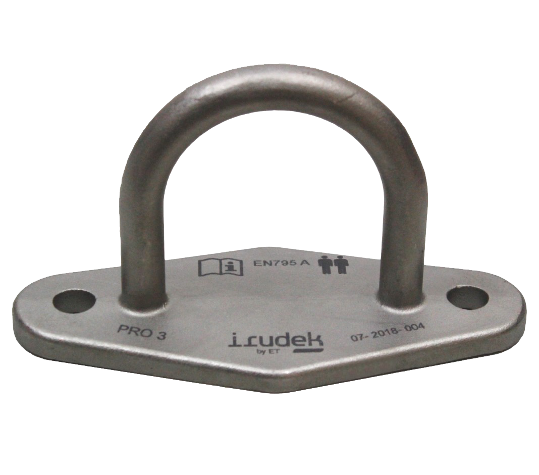 Anello di ancoraggio in acciaio inossidabile certificato per 2 utilizzatori. Ideale per l’utilizzo con aste e per diversi tipi di fissaggi: solai di calcestruzzo, strutture metalliche, ecc. Fissaggio mediante 2 viti M12.