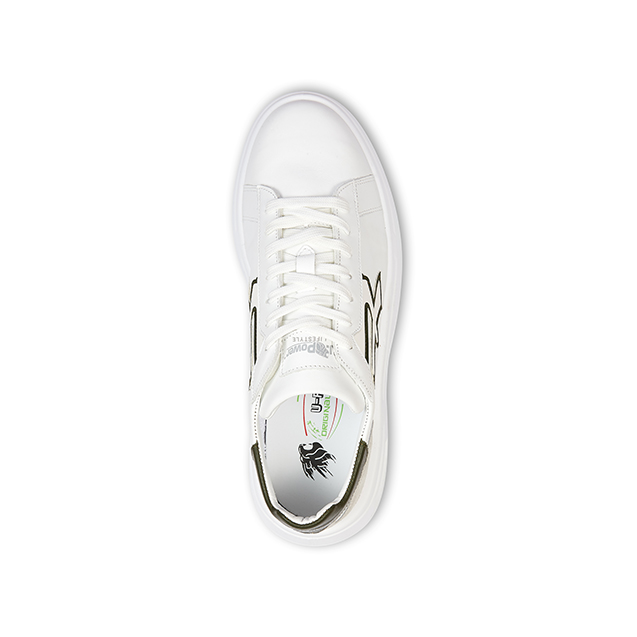 La tomaia in morbida pelle bianca con eleganti dettagli verdi rende questa calzatura adatta ad ogni occasione.