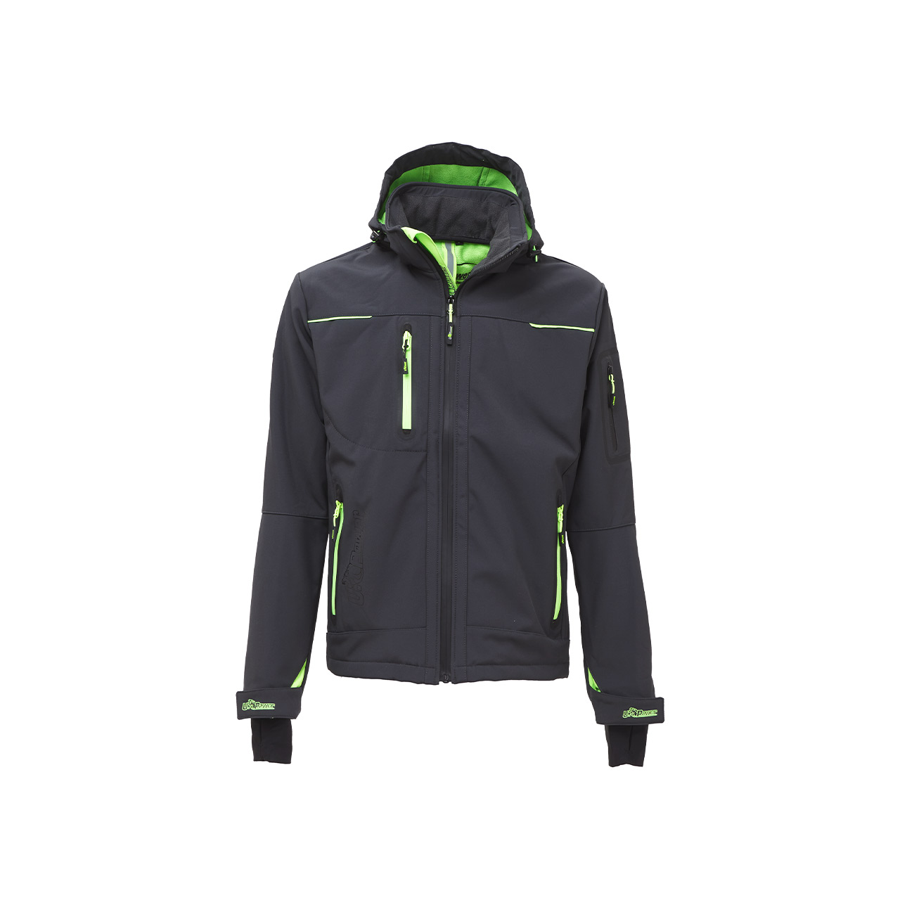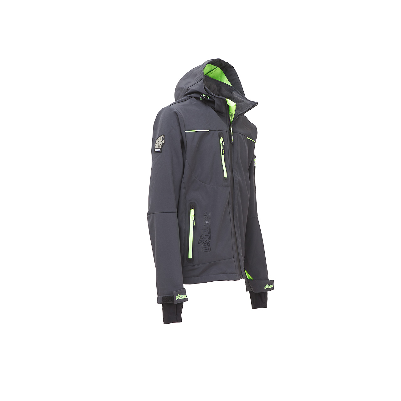 Giacca in Softshell con membrana U-Tex che rende il tessuto impermeabile, traspirante e antivento. Giacca molto comoda e resistente con una fodera interna in morbido micro-fleece fluo. Chiusura centrale con zip impermeabile. Maniche preformate per vestibilità ottimale, cappuccio regolabile e staccabile, polsini regolabili con velcro e polsino antivento elasticizzato con foro passa-pollice. Dotato di due tasche frontali chiuse con zip fluo e coulisse antimpigliamento regolabile all’interno. Una tasca porta cellulare sul petto con tecnologia Free Sound chiusa con zip fluo. Due ampie tasche interne. Tasca supplementare termosaldata su manica sinistra. Fondo sagomato. Nastro reflex su colletto nella parte posteriore. Logo U-Power tono su tono.