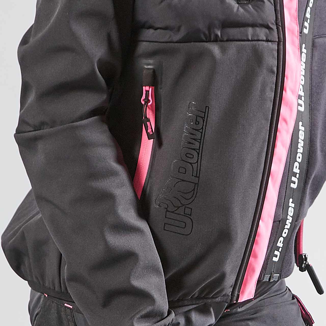 Giacca multitasche dotata di due ampie tasche frontali chiuse con zip fucsia in colore fluo e una tasca sul petto chiusa con zip impermeabile. Due ulteriori ampie tasche interne.