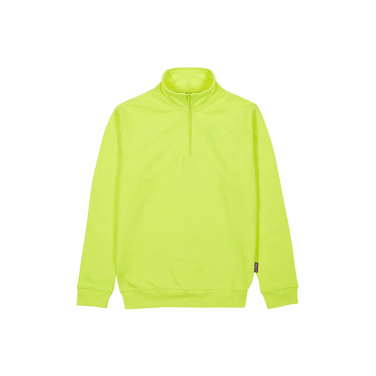 Il design di questa felpa mezza zip da lavoro è caratterizzato dalla manica a giro, un dettaglio che conferisce al capo un aspetto contemporaneo e alla moda. Il collo chiuso da zip aggiunge un tocco di versatilità, permettendo di regolare la temperatura in base alle diverse esigenze. I polsini e il fondo in costina elasticizzata, il nastrino sul collo in twill e le cuciture ribattute contribuiscono al design moderno della felpa.