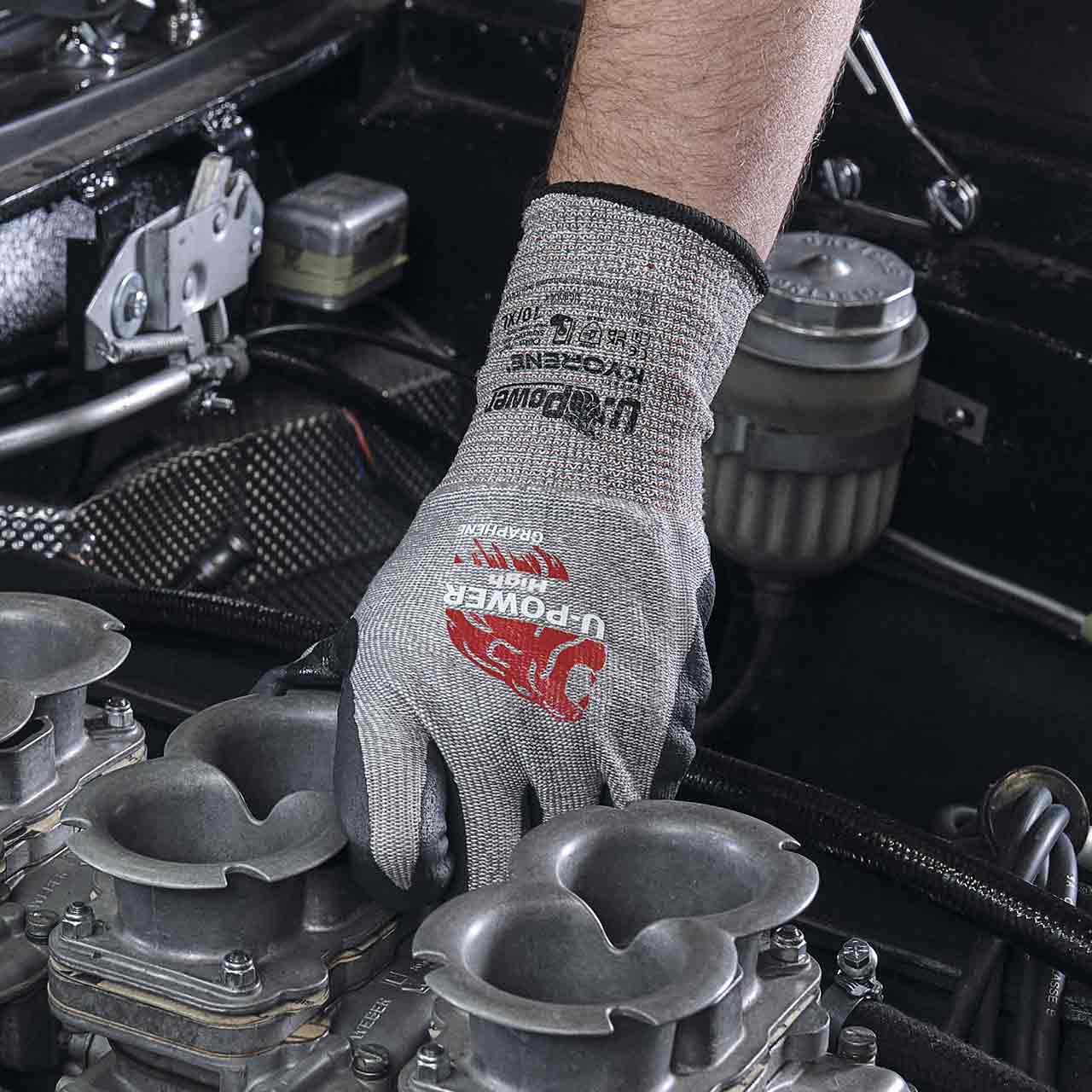 Guanti da lavoro termoregolatori con fodera in grafene Kyorene con finezza 13 e proprietà antimicrobiche, odor control, distribuzione e mantenimento del calore in maniera uniforme e costante.