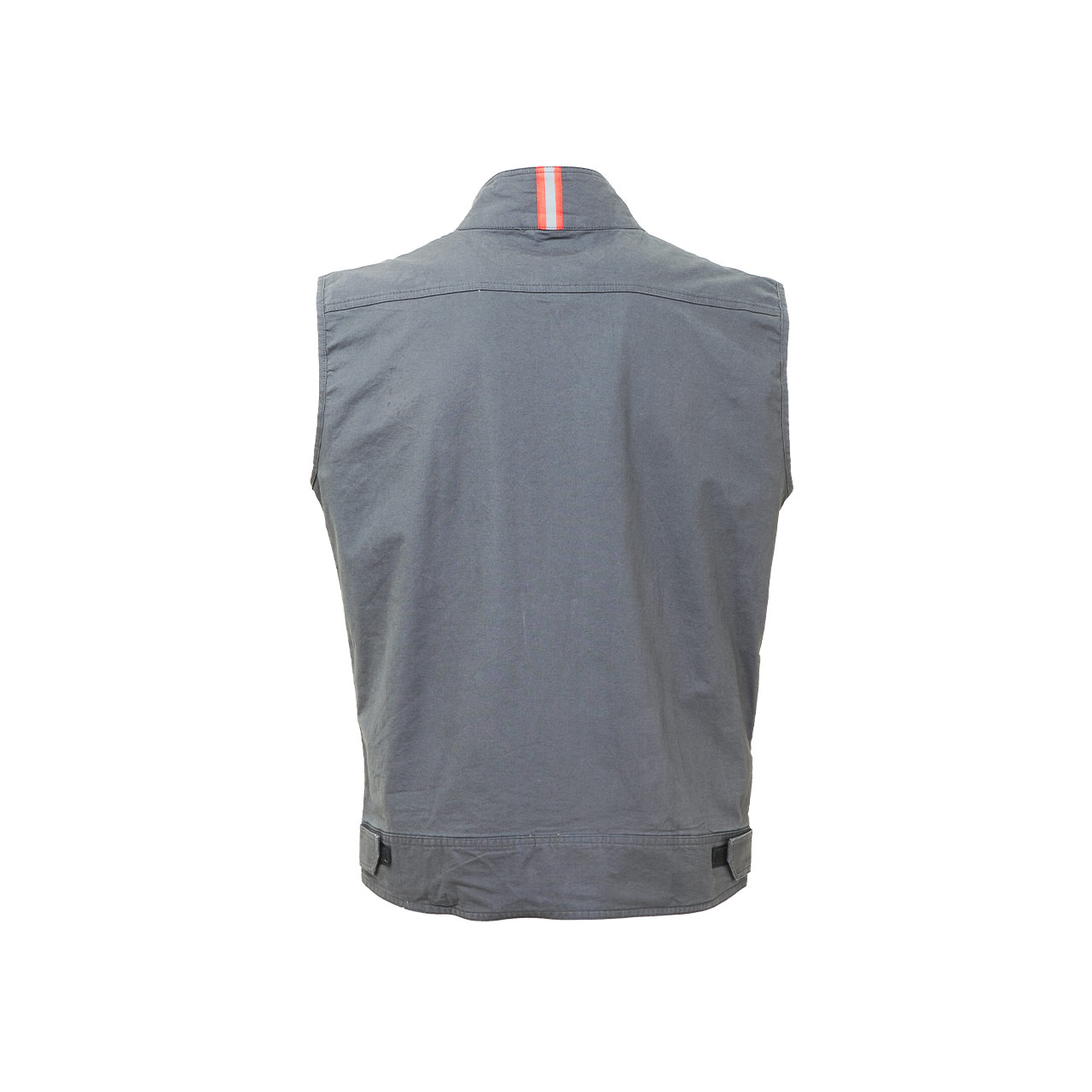 Gilet da lavoro in tela di cotone elasticizzato. Due ampie tasche frontali, una tasca multifunzionale sul petto, regolazione con velcro sul fondo. Nastro rosso/reflex su colletto nella parte posteriore. Zip. Confezionato in comodo sacchetto di nylon con chiusura a strozzo. Si abbina al Pantalone Ocean e al Bermuda Summer.